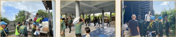 Community networks in the Northeast (Isan) gathered essential items which were more than 14 tons of relief supplies to Southern Thailand by two 6-wheel trucks. Then, CODI Southern Regional Office staff and local community networks supported the operational process of receiving supplies, sorting by category, assembling relief packs, and distributing them to flood-affected communities and households as rapidly as possible.