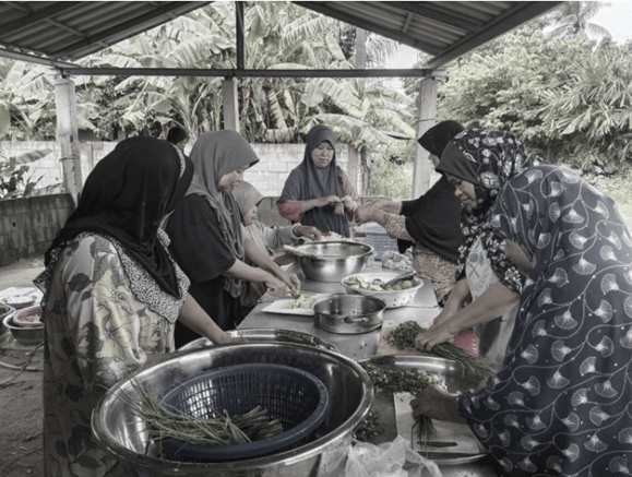 Beyond goods distribution, community networks have expanded community management and relief efforts to include direct community care. Community networks in Pak Phanang launched the “Curry Team: Community Kitchen” initiative to support families facing contaminated floodwater and prolonged hardship in 17 sub-districts across three districts in Nakhon Si Thammarat Province (Pak Phanang, Cha-uat, and Chian Yai). Meals and survival items from different areas such as Pak Phanang and Thung Song were prepared and delivered continuously through community-based teams. Moreover, in Hat Yai District, Songkhla Province, local community kitchens prepared and delivered 1,500 meal sets of rice with shrimp paste curry to affected households in urban areas urgently. These actions highlight the critical role of grassroots action, both in meeting immediate needs during crisis and revitalization of traditional knowledge.